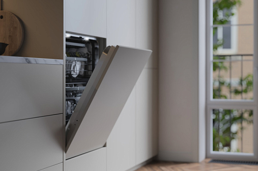 Слайдерная конструкция гарантирует прекрасную интеграцию посудомоечной машины в любой интерьер.